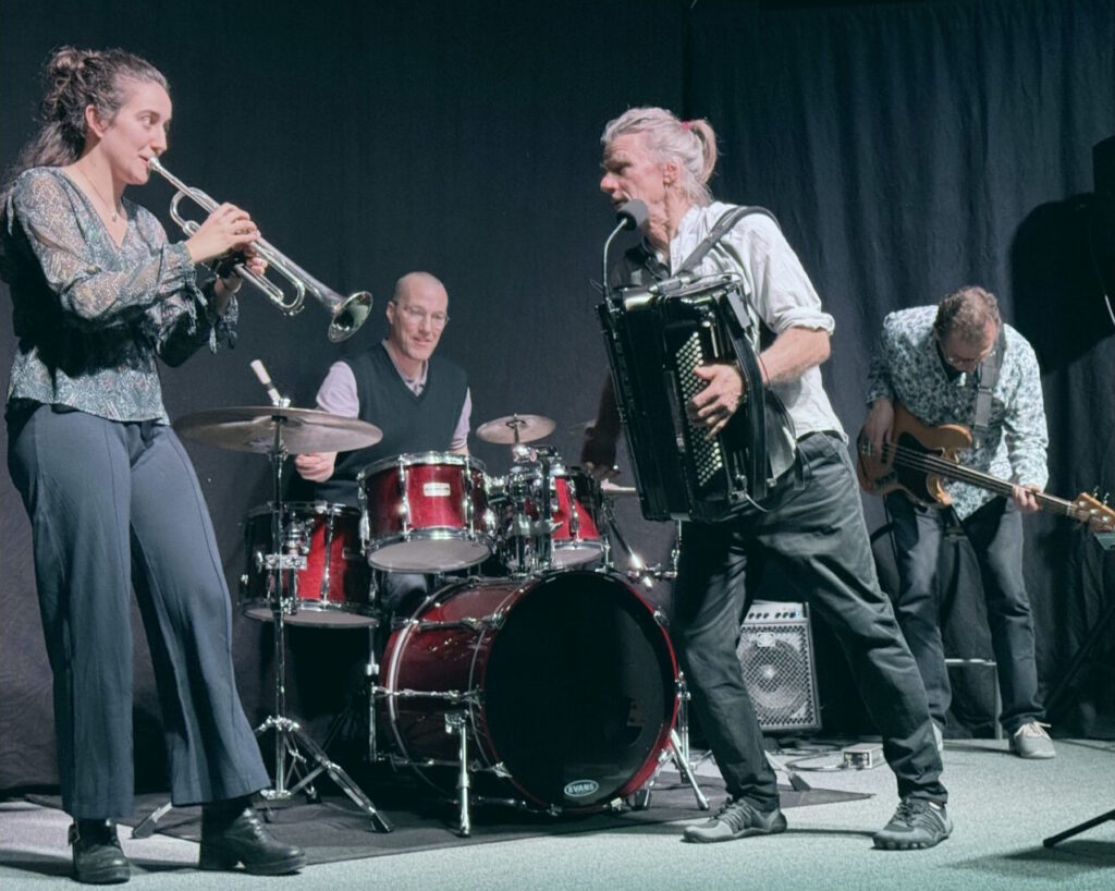 Mit Rudi Rhode (Texte, Gesang, Akkordeon, Harp), Michael Gustorff (Bass), Moritz Schniedergers (Drums) und Marijke Gustorff (Trompete, Flügelhorn).